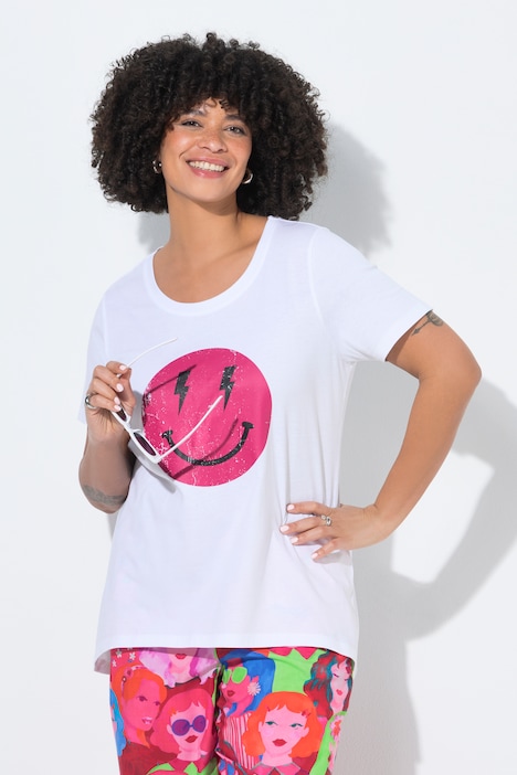 T-shirt, A-lijn, smileymotief, korte mouw